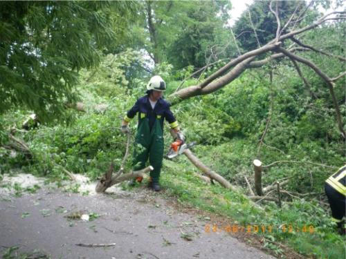 Unwetterschäden zu beseitigen. Hier